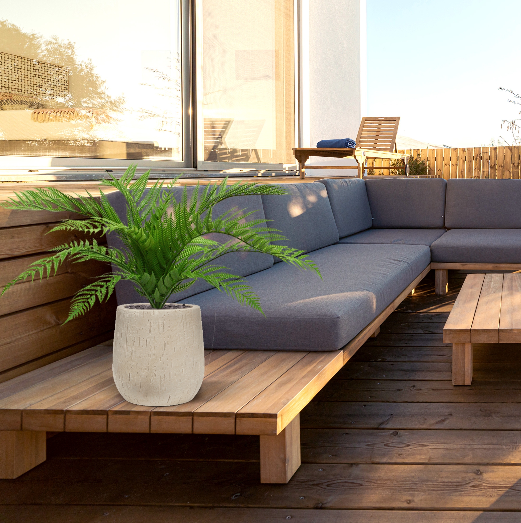 Deze Kunst Alsophilla Varen van 60 cm UV-proof is een prachtige toevoeging aan elke binnen en buiten ruimte. Met een hoogte van 40 cm en een diameter van 60 cm brengt deze kunstplant een vleugje groen en frisheid. De visuele kenmerken van de plant zijn met grote precisie ontworpen om de echte Alsophilla Varen na te bootsen, met zijn delicate en ingenieus gevormde bladeren. De aandacht voor detail in het vakmanschap van deze kunst varen is werkelijk opmerkelijk. Standaard wordt de Kunst Alsophilla Varen van 60 cm UV geleverd zonder een plastic pot, maar je kunt direct een plastic of extra decoratieve pot bestellen voor een luxueuze uitstraling. Dit zorgt ervoor dat je nieuwe kunstplant niet alleen ongelooflijk realistisch oogt, maar ook perfect past bij je bestaande interieur.