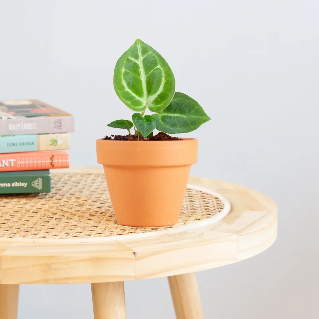 De Anthurium Doryaki is een opvallende, bijzondere plant. Zijn prachtige, brede lichtgekleurde nerven op de ronde bladeren vallen goed op en stelen de show. Het blad heeft een mooie glans en is redelijk dik. De naam Doryaki komt van de Japanse gevulde pannenkoekjes waar de bladeren op lijken. Deze groene, zeldzame schoonheid, vindt zijn oorsprong in het regenwoud van Midden- en Zuid-Amerika. Daar groeit de plant als epifyt in bomen. Een epifyt groeit op een boom, maar trekt zijn voedingsstoffen niet uit de boom waar hij op groeit, maar uit de lucht. De Anthurium is een prachtige en niet al te moeilijke plant, om toe te voegen aan je interieur. Deze bijzondere plant is opgekweekt uit weefselkweek. Dit houdt in dat wij een heel klein weefselkweekplantje kregen en die hebben laten groeien. Daarna is deze uit het reageerbuisje gehaald en in de potgrond gezet. Let op! – De plant doet het beter met een luchtige bodem. Mix wat perliet met potgrond en zet de plant daarin. De Anthurium doet
