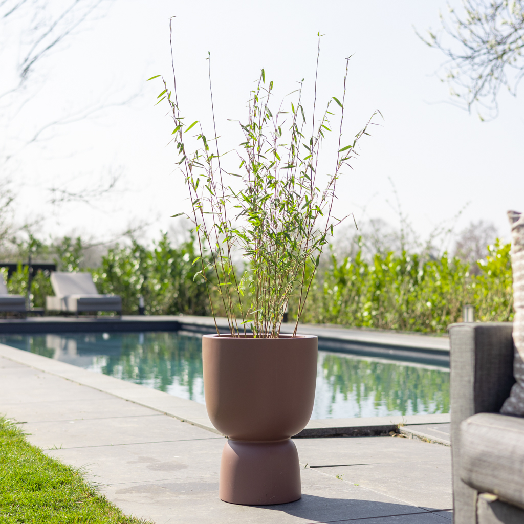 De Bamboe Fargesia is een ijzersterke tuinplant die zorgt voor een tropisch sfeertje en die je op elk moment kan snoeien. Deze Fargesia is goed te controleren en zal niet woekeren. Goed om te weten is dat dit soort ook zeer geschikt is om te gebruiken als wintergroene haag. Oorspronkelijk komt deze bamboesoort for in Zuid- en West-China. Hier wordt de fargesia ook wel jian zhu genoemd, wat pijlbamboe betekent. Deze naam is gegeven omdat de bamboe recht naar boven groei en deze heeft spitse bladeren. De naam Fargesia is afgeleid van de Franse amateurbotanicus Paul Guillaume Farges. Eigenlijk behoort de grassenfamilie, maar in tegenstelling tot 'gewone' grassen, zijn de stengels van bamboe hol van binnen. Let op! – Als de bladeren ligt om gaan krullen, is dat een teken dat de bamboe wel wat extra water kan gebruiken. Lichtbehoefte – De Fargesia bamboe kan in principe overal buiten staan, maar goed om te weten is dat de bamboe ook goed op een schaduwrijke plek kan staan. Water geven –