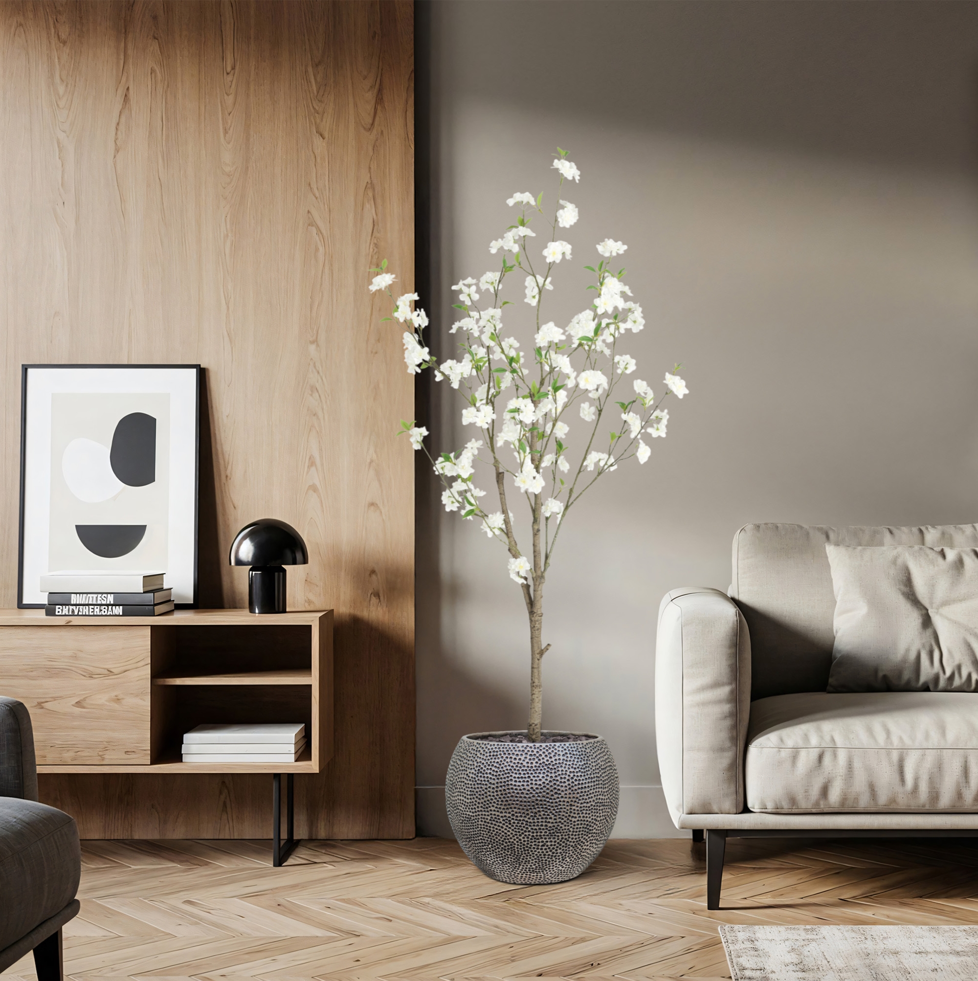De Bloesem Kunstboom 150cm Creme is een ideale keuze voor binnenshuis gebruik en past perfect in woonkamers, eetkamers, gangen, vergaderruimtes of zelfs hotels en lounges die behoefte hebben aan een vleugje rust en verfijning. Of je nu een rustige hoek wilt inrichten of een elegant middelpunt in je kamer zoekt, deze kunstbloesemboom voegt altijd een charmante en kalmerende sfeer toe aan je interieur. Dankzij zijn subtiele bloemen brengt hij de magie van bloei het hele jaar door.