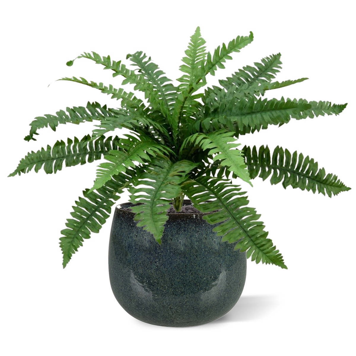 Verrijk uw ruimte met de natuurlijke pracht van de Boston Varen kunstplant. Met een weelderige diameter van circa 50 cm op het breedste punt en een hoogte van ongeveer 40 cm, inclusief een steel van ± 9 cm, ademt deze luxe kunstplant leven in elke omgeving.