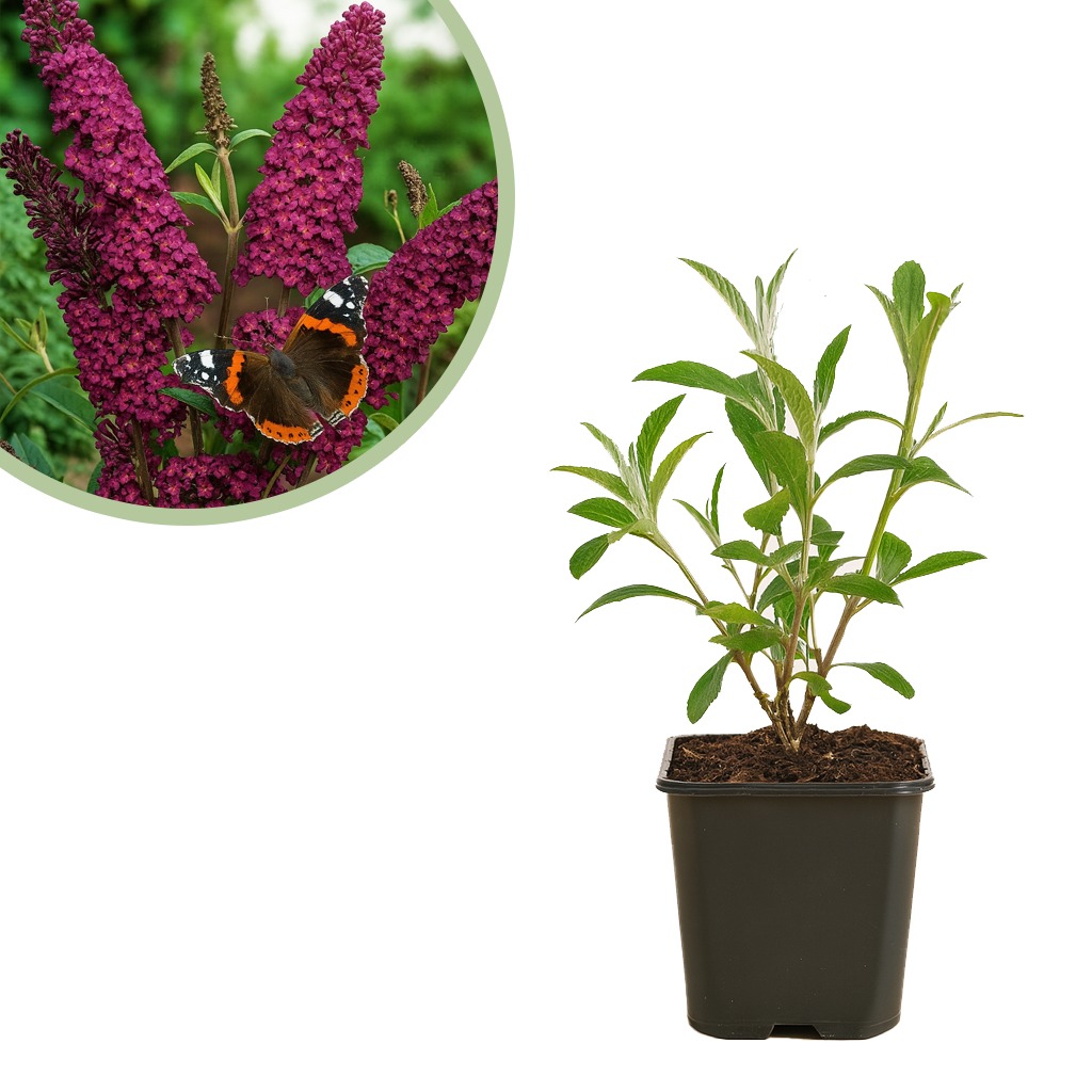 De Buddleja davidii 'Royal Red' is een vlinderstruik die z'n naam dubbel en dwars waarmaakt. Deze tuinplant (https://www.plantje.nl/tuinplanten/) staat namelijk bekend om zijn prachtige roodpaarse bloempluimen die vlinders én bijen aantrekken. De Buddleja is een bladverliezende heester, volledig winterhard en meerjarig. Je kunt hem direct in de volle grond planten of gebruiken als kuipplant op een zonnig terras. Een veelzijdige blikvanger die het ook goed doet in borders. Vanaf juli tot en met september bloeit deze buitenplant rijkelijk. De opvallende bloempluimen kunnen tot wel 30 cm lang worden en zorgen voor een kleurrijke zomershow. De struik kan, afhankelijk van de omstandigheden, een hoogte van 2 tot 3 meter bereiken. Goed nieuws: snoei je hem in het vroege voorjaar stevig terug, dan blijft hij mooi compact én bloeit hij nog uitbundiger. De bloemen zijn niet alleen mooi, maar ook waardevol voor het ecosysteem. Belangrijk om te weten: Afhankelijk van de periode wanneer je deze