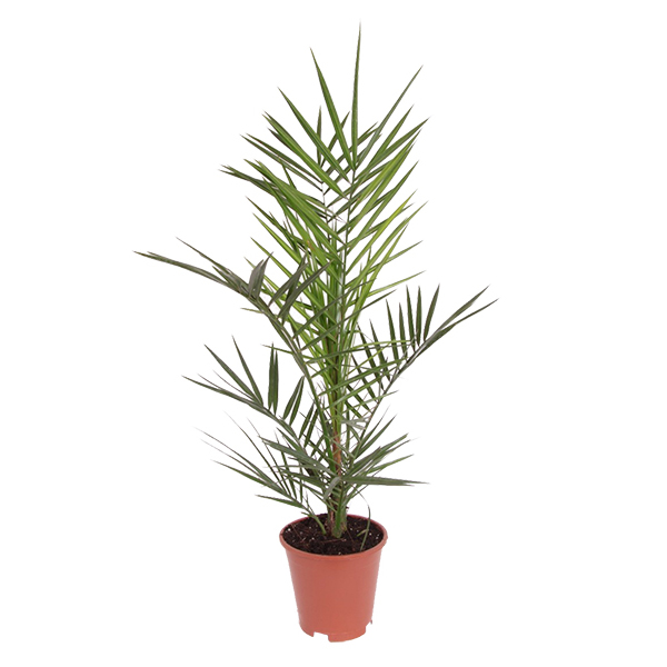 De Phoenix canariensis, ook wel Canarische dadelpalm genoemd, is een sterke palm en kan in de zomermaanden ook goed buiten staan. Een palm waarmee je de ruimte tropischer kan maken. Geef hem binnen een lichte standplaats en voldoende water.