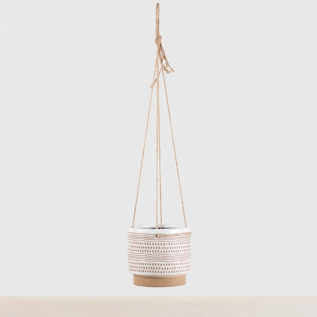 Deze hangpot past goed bij allerlei hangplanten. De keramische pot met neutrale kleuren en subtiele vormen staat mooi bij zowel kleurrijke als groene planten. Combineer de wit met lichtbruine pot met een mooie hangplant en geef deze zo de ruimte om met zijn sierlijke takken omlaag te groeien.