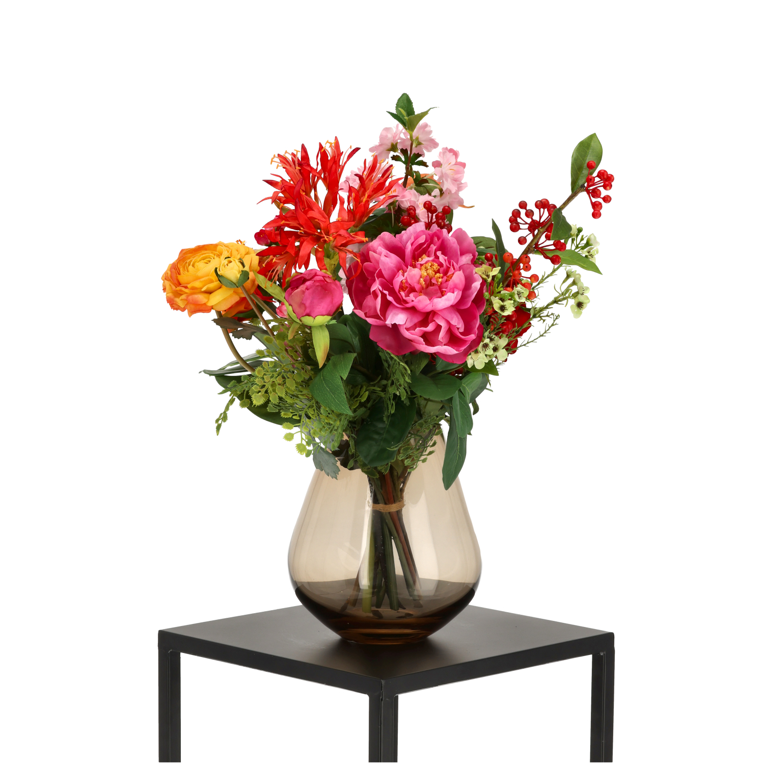 Dit boeket komt prachtig tot zijn recht in combinatie met de Tasman S taupe D18 x H20 cm (apart verkrijgbaar). De combinatie van de vaas en het boeket zorgt voor een elegante uitstraling.