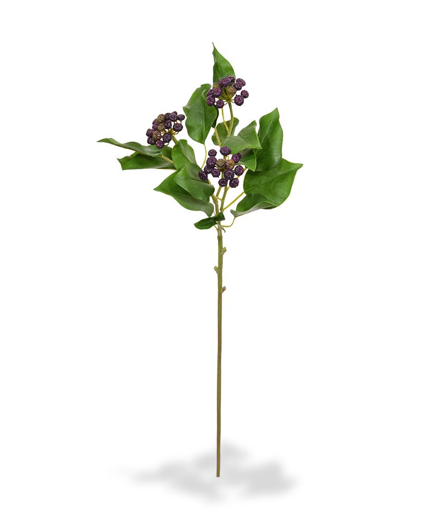 Onze kunst Hulst tak is zeer gedetailleerd nagemaakt met 3 trossen, blauwe vruchten en 15 groene blaadjes.