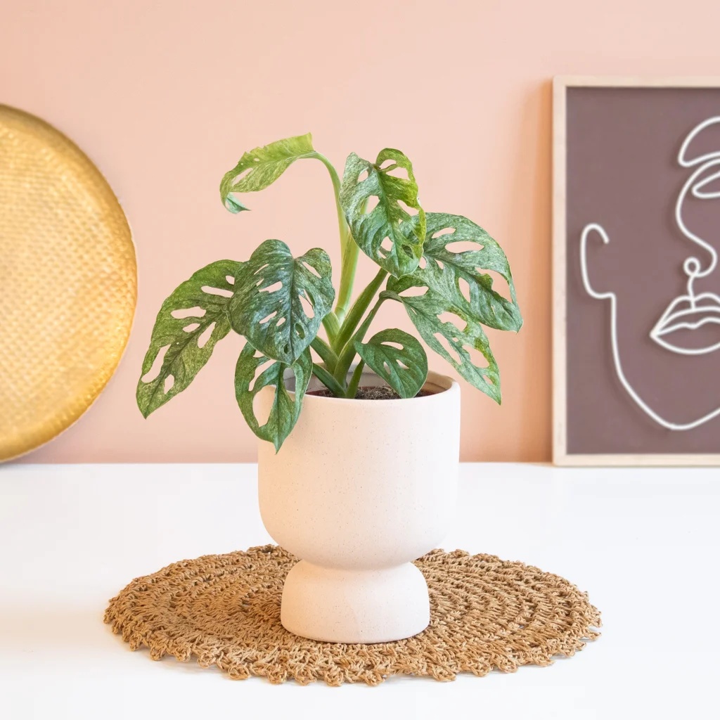 De Monstera Adansonii Mint wordt ook wel monkey mask genoemd. Deze bijnaam heeft de kamerplant (https://www.plantje.nl/kamerplanten/) te danken aan zijn bijzondere bladeren, die vol gaten zitten. Ideaal als masker voor een passerende aap, mocht die toevallig op zoek zijn :-). Deze variant is net iets anders dan de 'normale' Monstera Adansonii, (https://www.plantje.nl/monstera-obliqua-p-12-cm/) omdat de bladeren van de Monstera Adansonii Mint kleine vlekjes variegata in het blad heeft, wat resulteert in een mint-kleurig blad. Naarmate deze kamerplant groeit zullen er steeds meer gaten in de bladeren ontstaan, ook wel 'fenestraties' genoemd. In plaats van inkepingen in het blad, zoals bij de Monstera Deliciosa (https://www.plantje.nl/monstera-deliciosa-p17/), heeft de Adansonii echt gaten in het wat rimpelige blad. De Monstera () Adansonii komt van oorsprong uit de regenwouden van Midden- en Zuid-Amerika. De Monstera is een hemi-epifyt: een plant die zowel op de grond als op andere