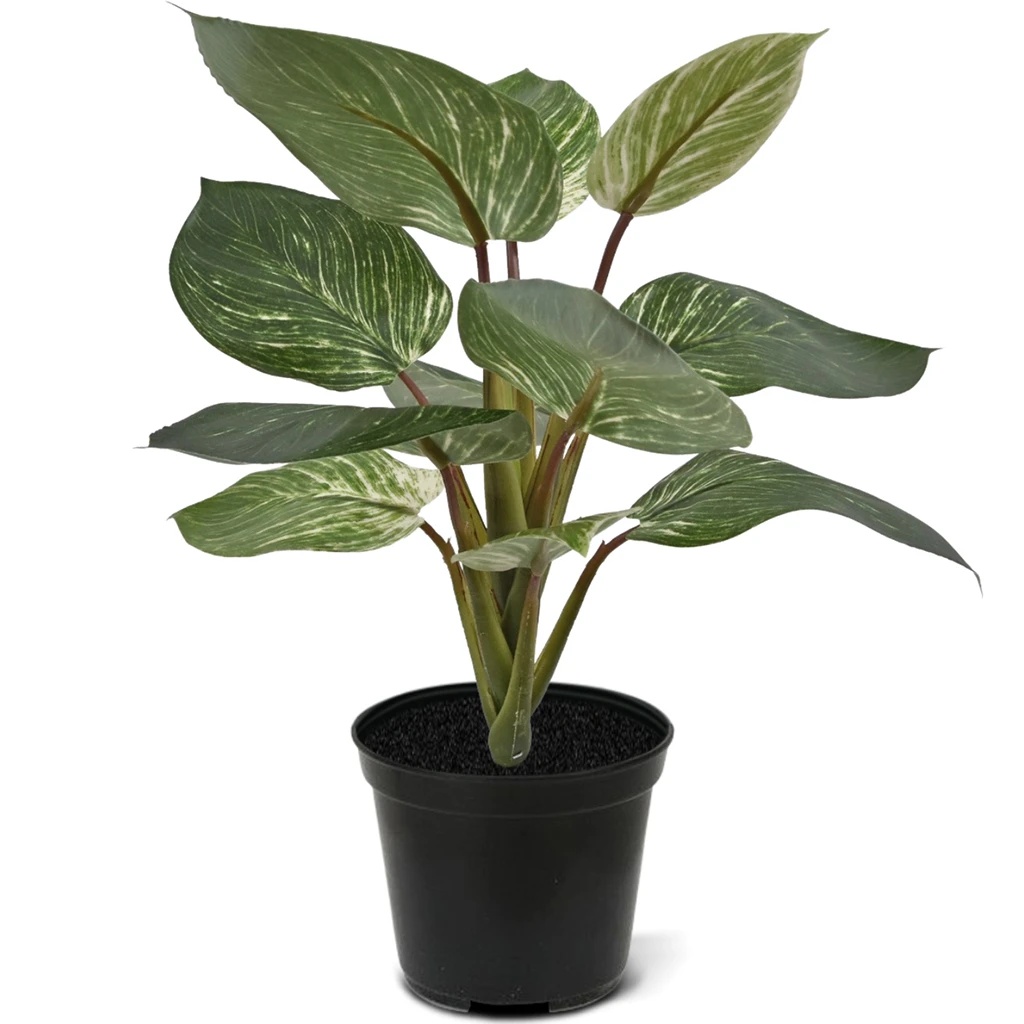 Levensecht en perfect voor dat ene plekje waar echte planten het niet goed doen, of gewoon wanneer jij zorgeloos wilt genieten. Creëer jouw eigen stijl door hem te combineren met een van onze vele sierpotten. Deze hoge kwaliteit Philodendron kunstplant is een echte aanwinst voor thuis of op kantoor. De plant is 30 cm hoog en dankzij de flexibele takken kun je hem helemaal naar eigen inzicht modelleren. – Niet van echt te onderscheiden – Hoge kwaliteit – Huisdier- en kindvriendelijk – Eenvoudig schoon te maken – Eenvoudig modelleren naar jouw wens. – Terug-koop-Regeling Omdat de kunstplant geen kluit heeft, is de pot kleiner dan bij een vergelijkbare echte plant. De maat van de sierpot die je hiervoor kiest, hangt af van persoonlijke voorkeur. Een wat grotere pot kan mooi in verhouding staan, maar houd dan wel rekening met ruimte tussen de kweekpot en sierpot. Duurzaamheid en terugkoopregeling Jouw kunstplant gaat enorm lang mee en zelfs zo lang dat het zou kunnen dat jij op enig moment