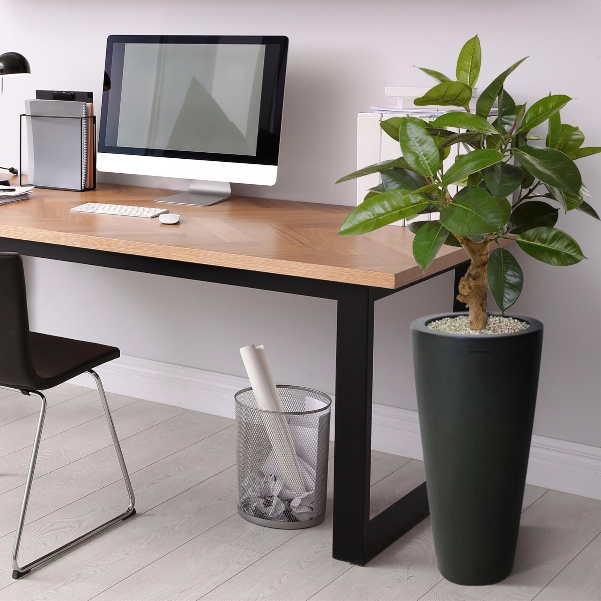Exclusief verkrijgbaar bij Maxifleur wordt de kunstzijden Philo standaard op een houten voet geleverd. De afgebeelde sierpotten zijn direct tegen meerprijs mee te bestellen.