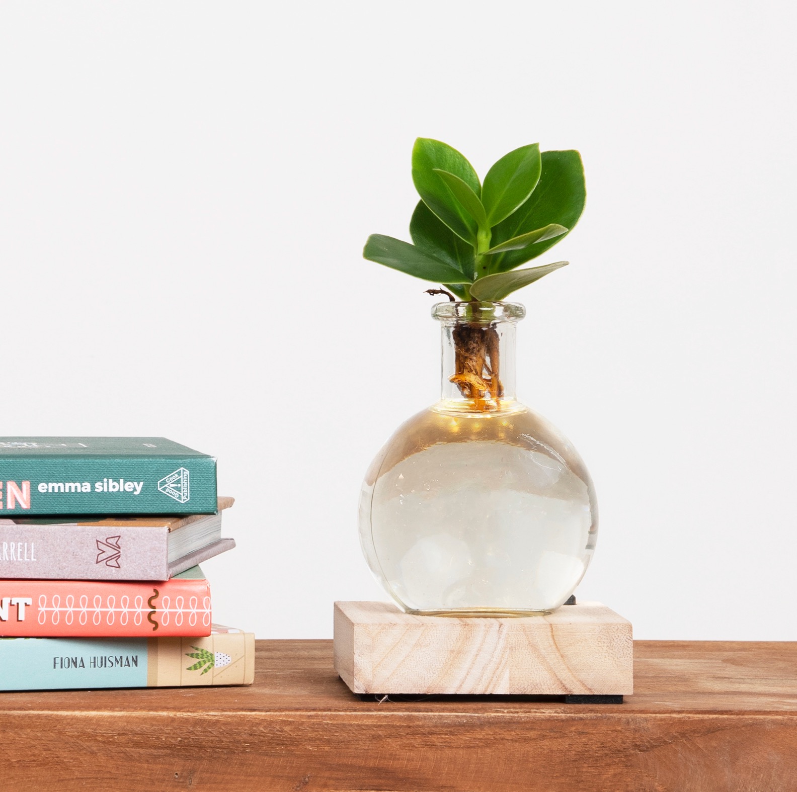 De Clusia Rosea, is een opvallende groene kamerplant. Deze plant valt op door zijn diepgroene, dikke bladeren die vrij breed groeien. Het is een echte blikvanger, vooral wanneer hij in het bijgeleverde vaasje met lampje staat en de wortels en bladeren schitterend worden verlicht. Deze kamerplant komt oorspronkelijk uit het Caribisch gebied, waar hij zo veel voorkomt dat hij door de lokale bevolking soms als onkruid wordt gezien. Ondanks deze reputatie in zijn thuisregio, wordt de Clusia Rosea hier gewaardeerd om zijn sterke en luchtzuiverende eigenschappen. De verzorging van deze kamerplant is vrij eenvoudig, wat hem een goede keuze maakt voor zowel beginnende als ervaren plantenliefhebbers. Hij groeit op water, een techniek die hydroponie wordt genoemd, wat de verzorging vereenvoudigt en een interessant visueel element toevoegt aan de presentatie van de plant. Rosea, wat 'roze' betekent, verwijst niet direct naar de kleur van de plant, maar mogelijk naar de subtiele tinten die soms in