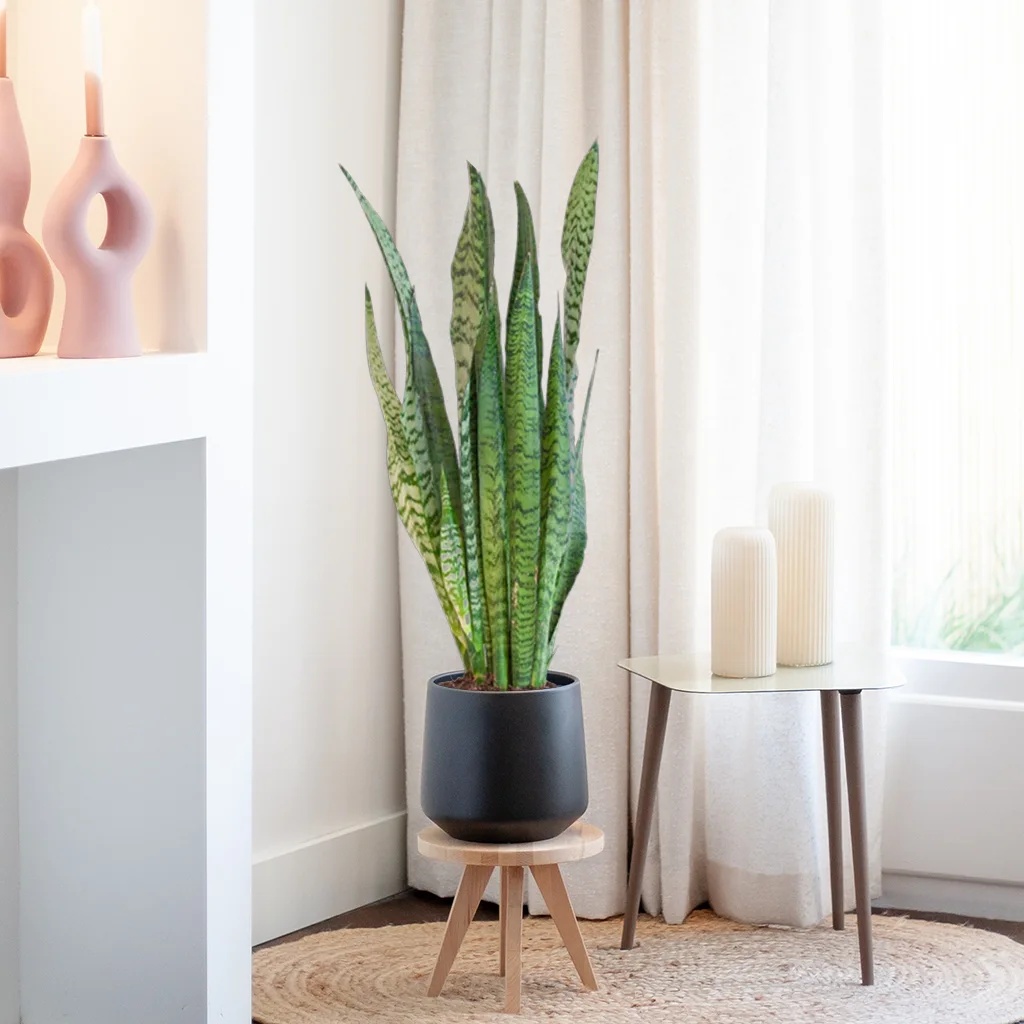 De Sansevieria Zeylanica, ook wel bekend als de Vrouwentong, is een ijzersterke kamerplant met stoere, rechtopstaande bladeren. Deze bladeren hebben een prachtig donkergroen patroon met lichtere strepen, wat de plant een unieke uitstraling geeft. Door zijn sterke karakter is deze Sansevieria niet alleen stijlvol, maar ook ideaal voor iedereen zonder groene vingers. Deze plant komt oorspronkelijk uit de droge gebieden van West-Afrika en Sri Lanka, waar hij gewend is aan warme temperaturen en weinig water. Hierdoor is de Sansevieria Zeylanica een van de makkelijkste kamerplanten om te verzorgen. Hij kan zelfs weken zonder water en blijft er toch prachtig uitzien! De Sansevieria Zeylanica is een plant die nauwelijks aandacht nodig heeft. Perfect voor als je vaak op reis bent of gewoon niet altijd zin hebt om je planten water te geven. Geef hem af en toe een scheutje water en hij is tevreden. In de lente en zomer kun je hem eens per maand wat plantenvoeding geven om de groei te stimuleren.