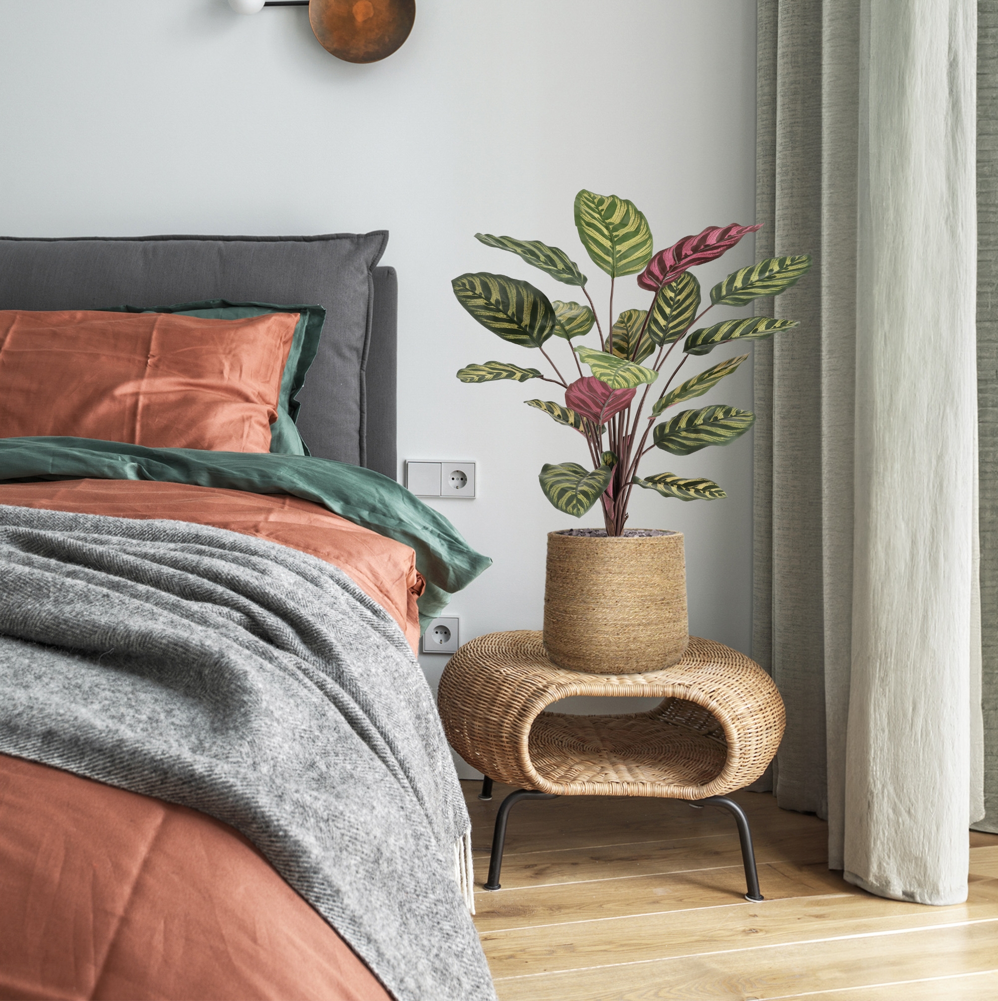 Met een hoogte van 60 cm en een breedte van 50 cm biedt deze Calathea een speelse en natuurgetrouwe uitstraling. Dankzij de handige steker kan de plant eenvoudig in een sierpot geplaatst worden. Een stukje piepschuim of vulling zorgt daarbij voor stabiliteit en een optimale presentatie.
