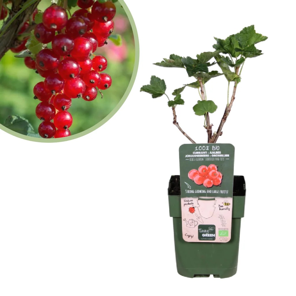 Het is een van de vroegst rijpende rode bessen, de bessen zijn al rond eind juni rijp. De bessen groeien in lange trossen en hebben een zure, maar frisse smaak. Je kunt ze bijvoorbeeld eten in vlaai of als jam. De struik bloeit in het voorjaar met kleine groen-witte bloemen. De Ribes Rubrum Jonkheer van Test is een rode aalbessenstruik. De plant produceert redelijk vroeg in het jaar aalbessen. Rond eind juni kan je al genieten van de eerste lading. De struik is zelfbestuivend en heeft dus geen hulp van andere planten en insecten nodig bij het bestuiven. Dit zorgt ervoor dat je, wanneer je de plant goed verzorgd, gegarandeerd kunt genieten van de aalbessen. De plant heeft een hoge vruchtopbrengst en de aalbessen kunnen ook gebruikt worden als jam. Deze aalbessenstruik is 100% biologisch gekweekt. Dat wil zeggen dat er geen chemische bestrijdingsmiddelen of kunstmest zijn gebruikt. De pot en het etiket zijn gemaakt van gerecycled plastic. Afhankelijk van de periode waarin je deze